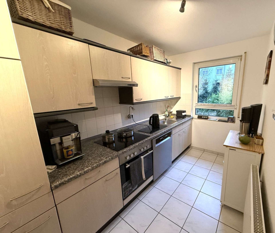 Küche: Funktionale Einbauküche, im Jahr 2024 mit komplett neuen Elektrogeräten ausgestattet (Cerankochfeld, Backofen, Spülmaschine, Kühlschrank, Abzugshaube).